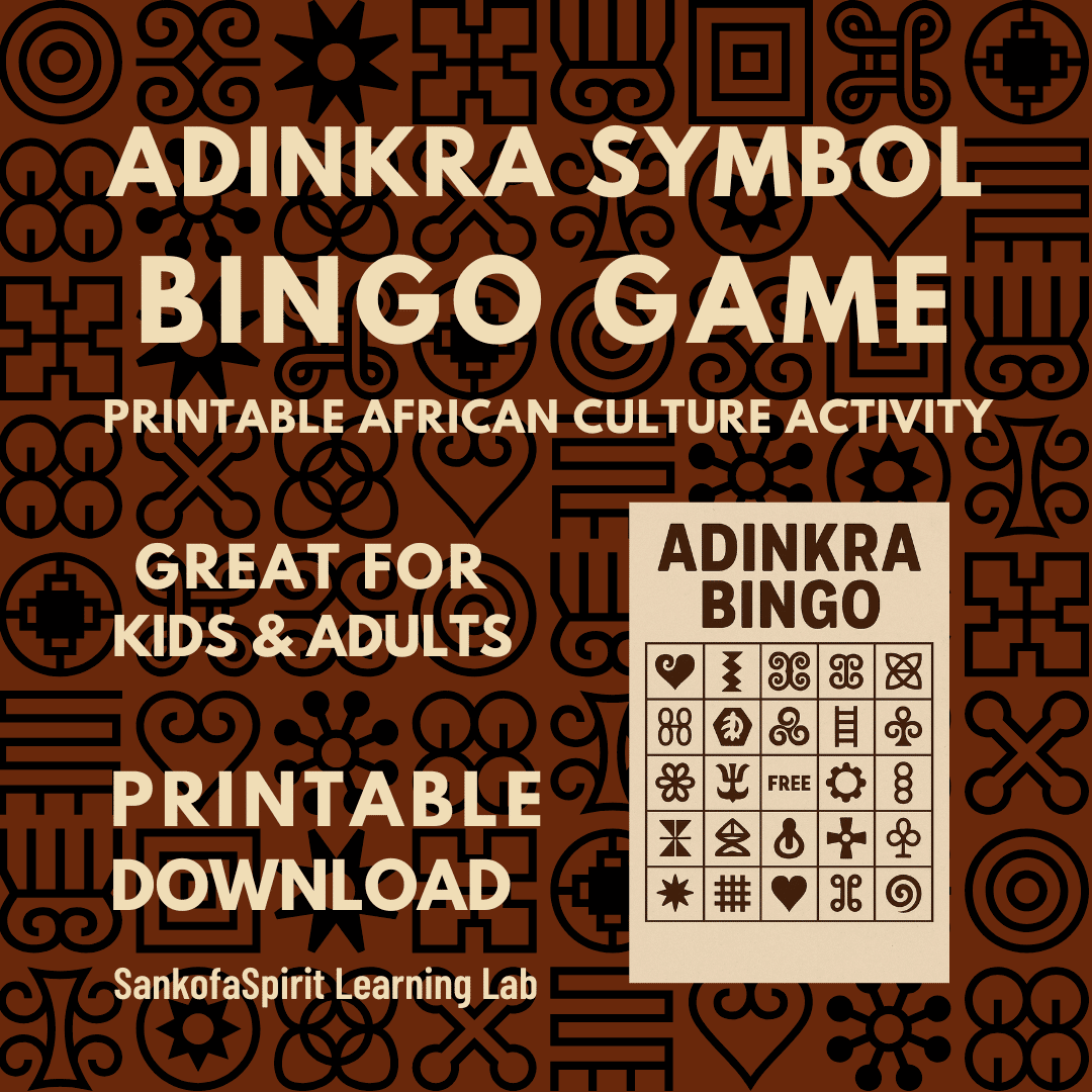 Bring African heritage into your home, classroom, or party with this engaging bingo game featuring traditional Adinkra symbols from Ghana. This printable download includes 8 unique bingo cards, a call sheet, and a symbol guide—perfect for kids and adults alike.